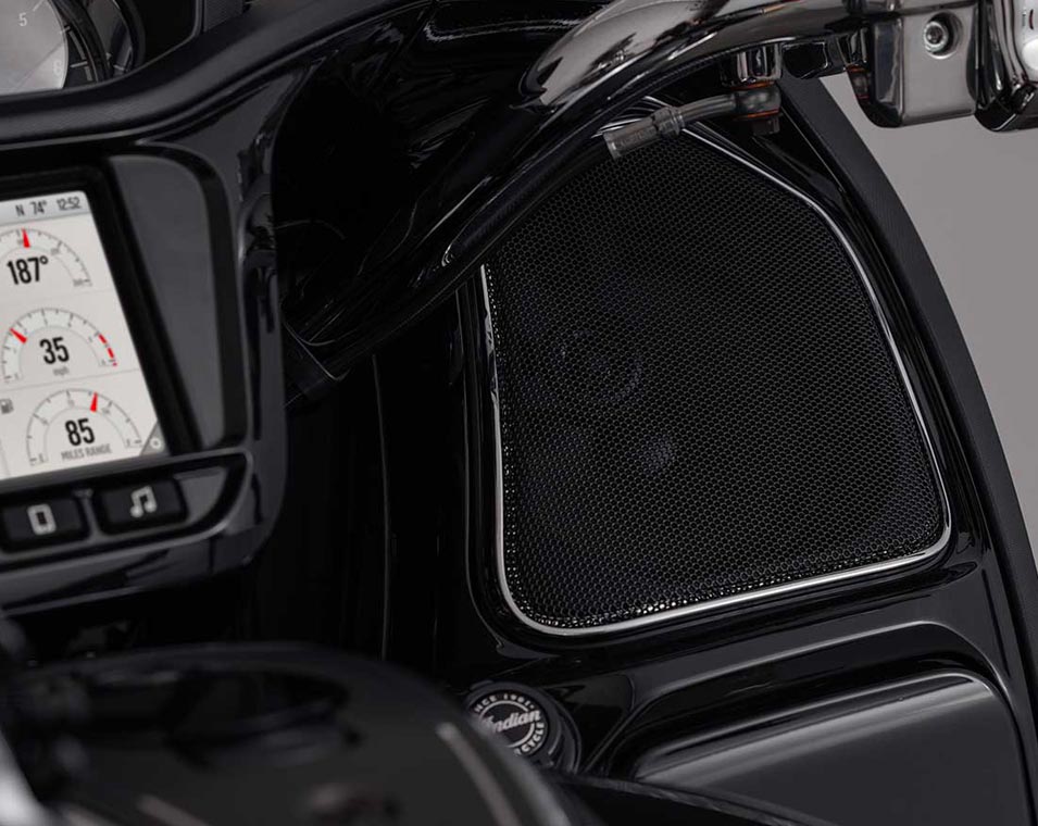 | Infotainment | 7" touchscreen powered by RIDE COMMAND. 7" touchscreen display with real-time clock; ambient air temperature; heading; audio information display; map/navigation; Bluetooth status for phone and headset; vehicle status (tyre pressure, voltage, engine hours, oil change); vehicle info (speed, fuel range, RPM, gear position); current ride data (distance, moving time, stop time, altitude, altitude change); trip meters; ride mode selection; screen brightness; vehicle trouble code readout; Apple CarPlay integration. |